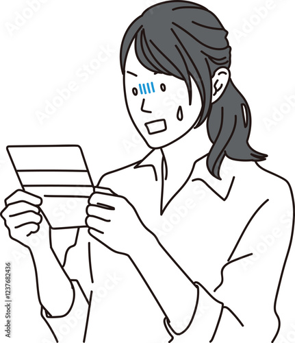 通帳を見て驚く女性のシンプルイラスト