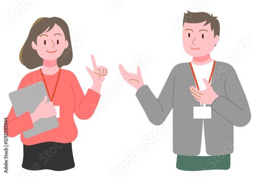 オフィスカジュアルで働く若い男性と女性のベクターイラストレーション