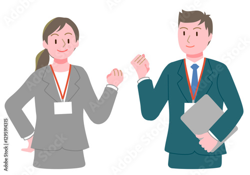 スーツ姿でガッツポーズの若い男性と女性のベクターイラストレーション