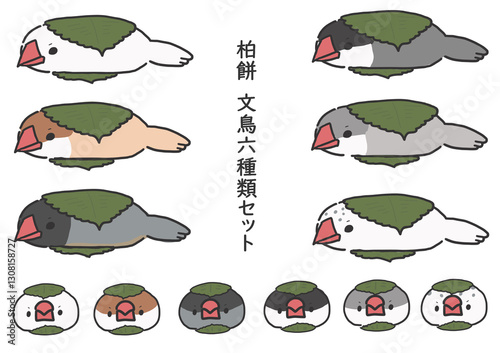 柏餅になった文鳥六種類の素材セット