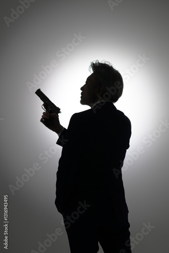 拳銃を構える男性
