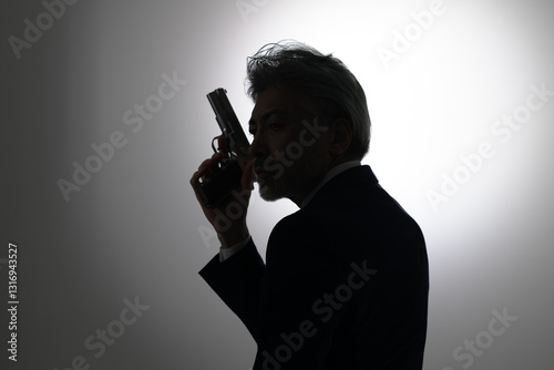 拳銃を構える男性