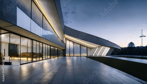 조명으로 반짝이는 백화점 외벽, 고급스럽고 현대적인 디자인의 유리 파사드