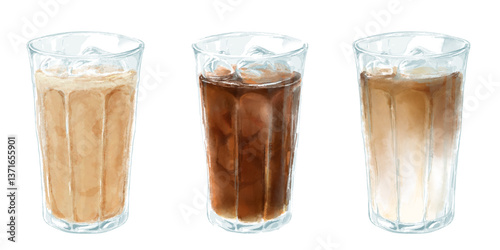 アイスラテ・アイスコーヒー・アイスカフェオレの水彩イラストセット