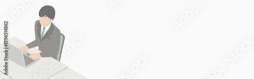 バナー ビジネス 人物 男性 アイソメトリック オフィス パソコン デスク 仕事 背景 イラスト素材