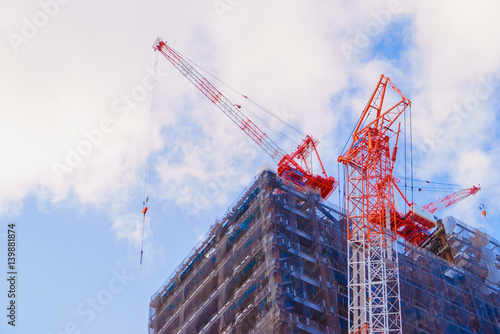 ビル建築のクレーン 背景青空