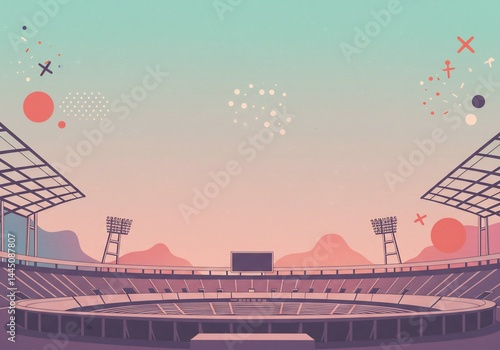 夕焼け空の下、静寂な競技場 優しいパステルカラー