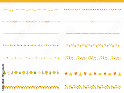 夏にぴったりなオレンジ系のカラフルでかわいいライン、下線のイラスト素材セット