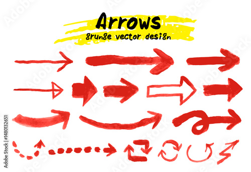 手描きの矢印のセット。落書き風の筆のベクターイラスト。