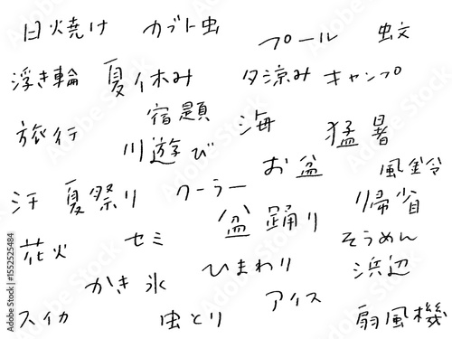 手書き文字セット 夏 えんぴつ