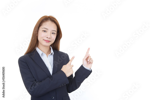 指示する笑顔のビジネスウーマン