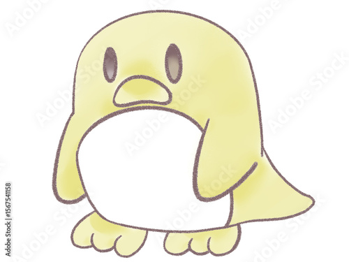 ペンギン,鳥,動物,生き物,手描き,アイコン,淡い色,ぼかし色,黄色