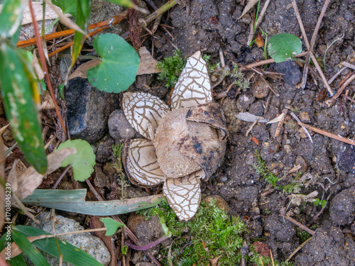 地面に開く地星菌のユニークな形