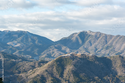 兵庫県 夕方の立雲峡から見た竹田城跡