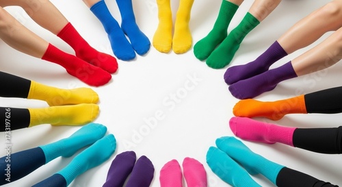 カラフルなクルーソックスが円形に並んだファッショナブルなポートレート