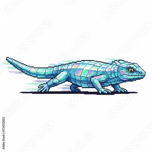 水色の爬虫類のピクセルアートの白い背景