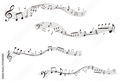 遠近感のある楽譜のフレームイラスト 五線譜 背景イラスト 音符、休符、音楽記号のイラスト