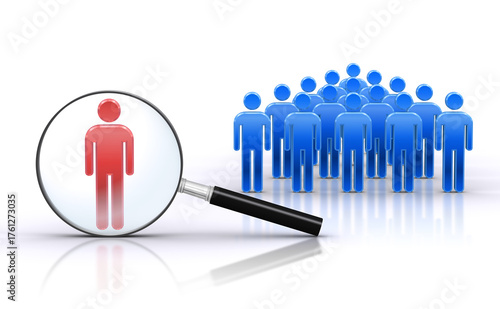 虫眼鏡で人型アイコンを検索する、人事の採用イメージ