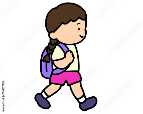 歩いて登校するアジア人の女の子
