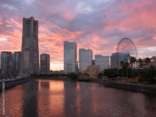 神奈川県 横浜市 みなとみらい 夕焼け空