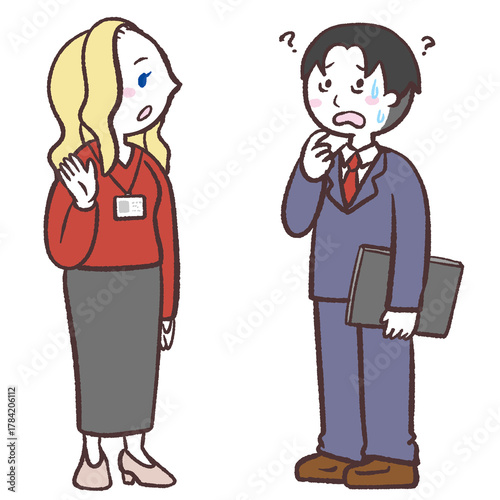 白人女性とうまく話せない男の子のイラスト