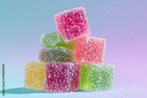 カラフルな砂糖でコーティングされたゼリーの塊