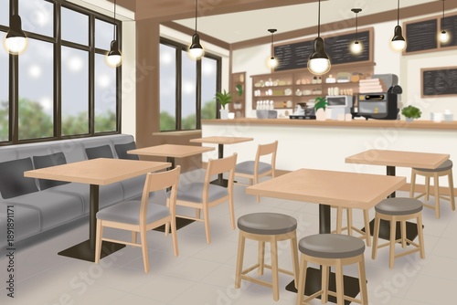 ナチュラルでおしゃれなカフェ店内の背景イラスト