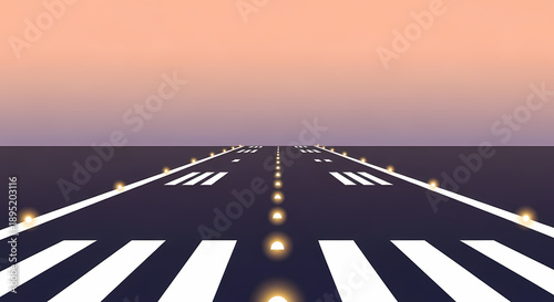 滑走路のミニマルイラストレーションと夕暮れの空の穏やかなグラデーション