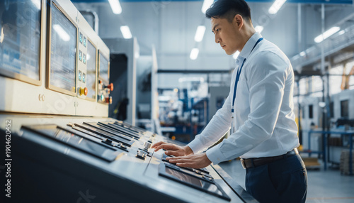 制御盤を操作する技術者 スマート工場の管理業務