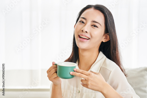 커피,젊은여자,소파,거실,태국인