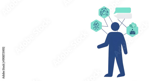 エシカル消費とデジタルトランスフォーメーションを象徴するフラットイラスト。倫理的な購買行動、透明性、サステナビリティの概念、左側に広いコピースペース。
