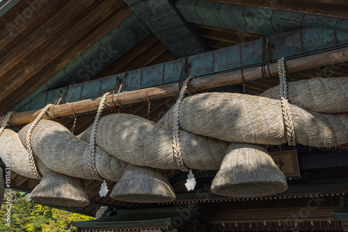 日本 島根県出雲市大社町にある出雲大社の神楽殿の大しめ縄