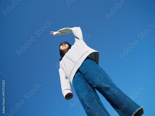 春の昼の公園で楽しく遊んでいる十代の女の子の姿