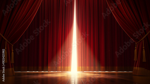 ステージの赤いベルベットの幕が開く、光り輝く舞台背景