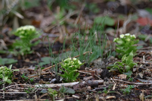 春一番雪の下から芽吹く