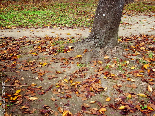 桜の木と落ち葉