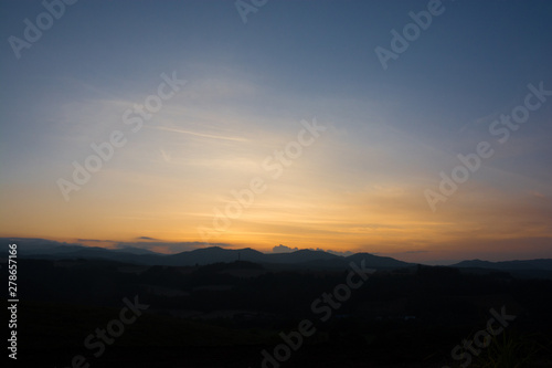 夕暮の山並みと夕焼け空