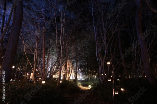森の中のクリスマスの灯り