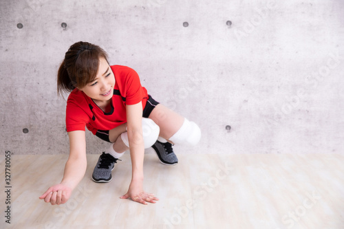 バレーボールをやる女性(真剣にレシーブ)