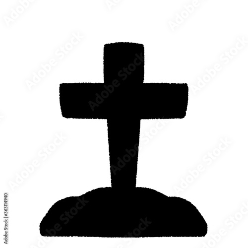 洋風な十字架のお墓のシルエット