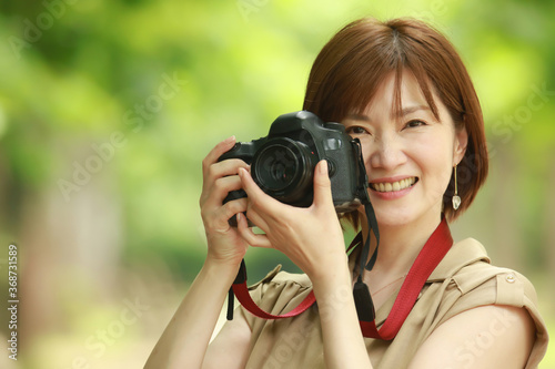 写真を撮る女性