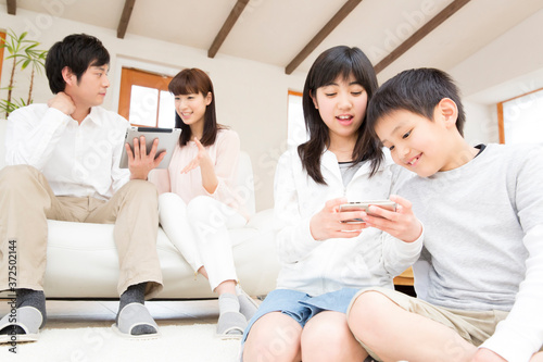 リビングで寛ぐ親子