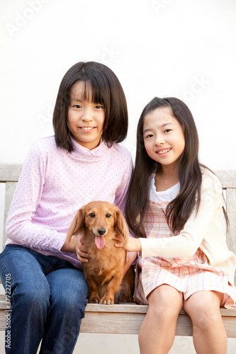 ミニチュアダックスフントと女の子