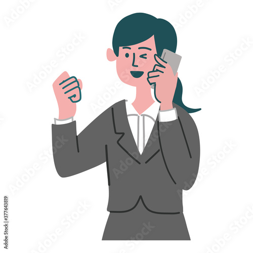 スーツ 女性 士業 携帯電話 スマホ ガッツポーズ