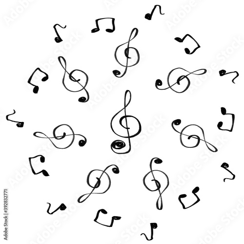 丸く広がる音符とト音記号の輪