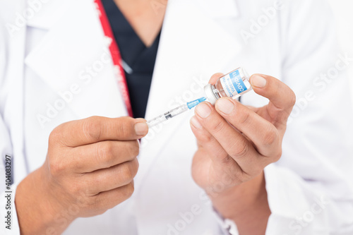 医師が手に持っている新型コロナワクチンのイメージ