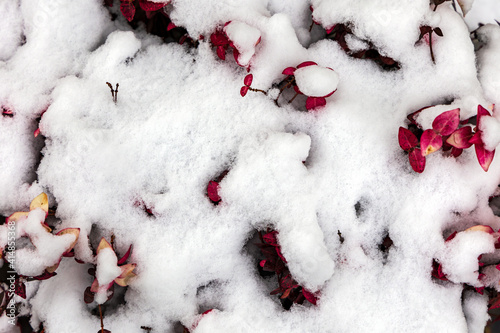 雪から顔を出した赤い木の葉
