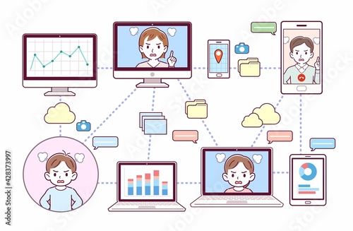 色々なツールを使って会議をする人々