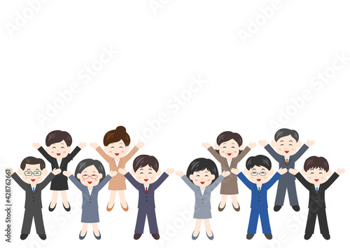 両手を上げて喜ぶビジネスパーソンたちのイラスト