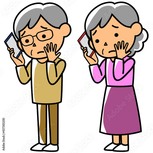 スマートフォンで通話する心配そうな表情の高齢者